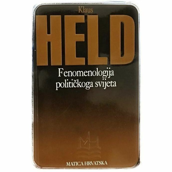 Izbor autorovih novijih radova koji su u bitnom odredili tijek suvremenoga fenomenološkog filozofiranja koje fenomenologiju nastoji uključi u povijest metafizike koja se hoće prevladati, a da se ujedno iz nje poluče novi etički i politički impulsi. Suvremeni jemački mislilac Klaus Held nastavlja tradiciju fenomenologije u njezinu obratu od svijesti prema fenomenu svijeta, a ujedno obnavlja izvornu zapadnjačku ideju filozofije kao znanosti. Takva mu se misaona linija račva u fenomenologiju poitičkoga svijeta i fenomenologiju prirodnoga životnog svijeta, u čemu nastoji zadobiti obuhvatnu osnovu za jednu filozofijsku ekologiju. Naglasak ujedno stavlja i na budućnost europske kulture u razdoblju globalnoga susretanja i srastanja cjelokupna čoječanstva.