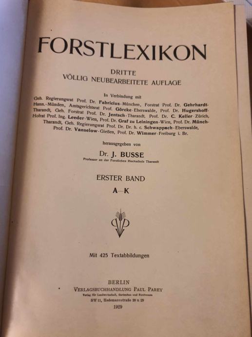 Forstexikon, J. Busse,1929 set od 2 knjige