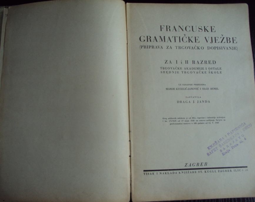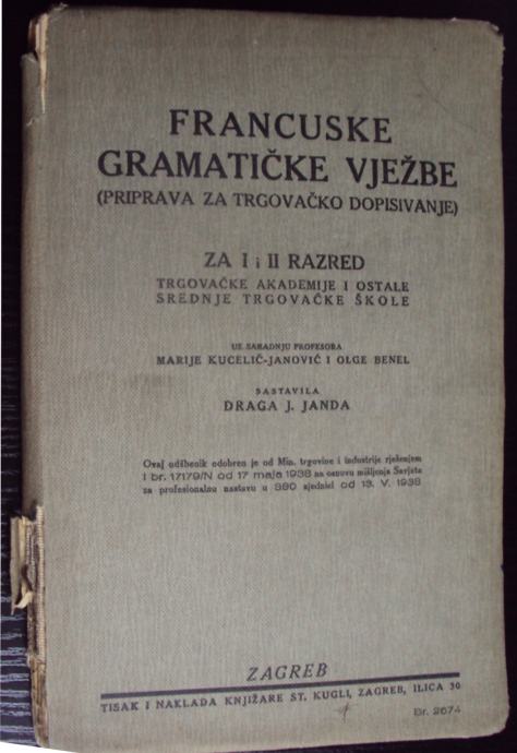 FRANCUSKE GRAMATIČKE VJEŽBE - Za 1. i 2. razred - Draga J . Janda 1938
