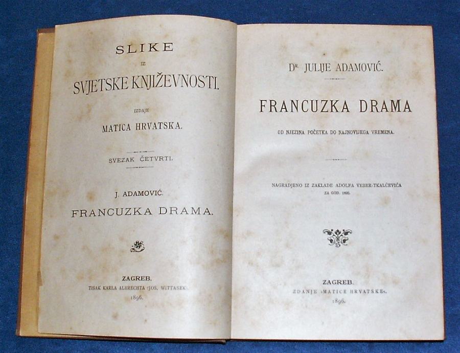 FRANCUZKA DRAMA Dr. Julije Adamović Matica Hrvatska 1896