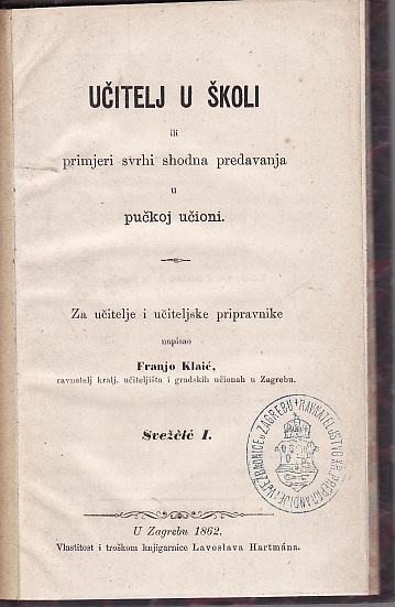 FRANJO KLAIĆ - UČITELJ U ŠKOLI ili primjeri svrhi shodna predavanja u pučkoj učioni