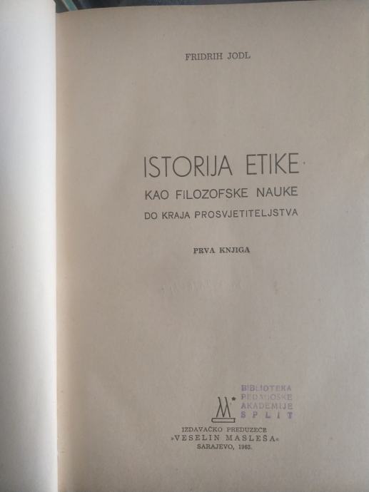 FRIDRIH JODL - ISTORIJA ETIKE Prva Knjiga