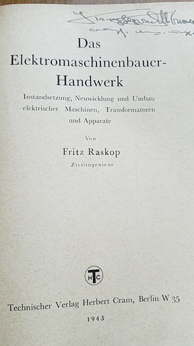Fritz Raskop ; Das Elektromaschinenbauer-Handwerk , Berlin 1943. 59€