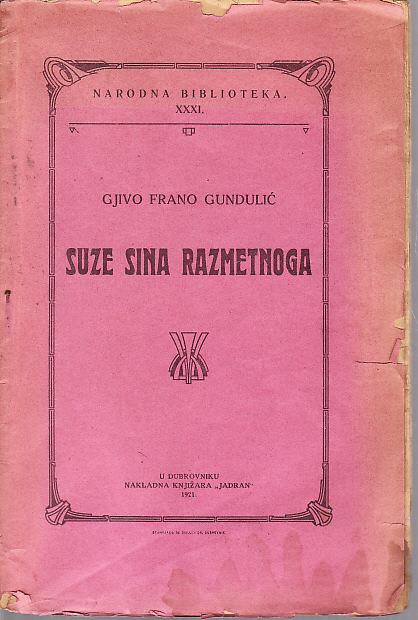 GJIVO FRANO GUNDULIĆ : SUZE SINA RAZMETNOGA , 1921. JADRAN DUBROVNIK
