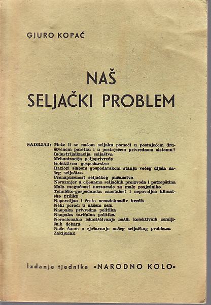 GJURO KOPAČ : NAŠ SELJAČKI PROBLEM, ZAGREB 1940