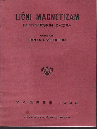 GRGA I. ZUCCON : LIČNI MAGNETIZAM , ZAGREB 1933.