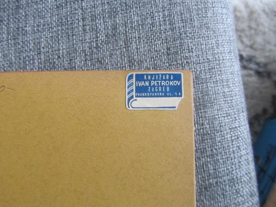Ima naljepnicu iz Knjižare Ivan Petrokov (Frankopanska ul. 5), što je vidljivo na priloženim fotografijama.