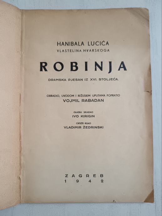 Hanibal Lucić- V.Rabadan: Robinja (1942.) RIJETKO