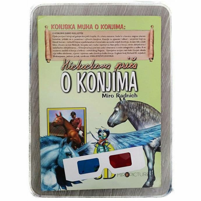 Slikovnica tvrdih korica donosi 3D slike ( sa pripadajućim naočalama) i kratke podatke o nekima od pripadnika porodice konja: današnjim konjima i njihovim pretcima, magarcima i zebrama. Spominju se i neki od konja iz legendi i mitova. Primjereno djeci mlađe dobi.