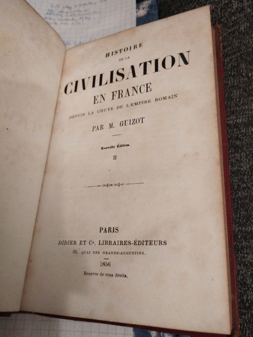 Prodajem antikvitetnu knjigu "Histoire de la Civilisation en France depuis la chute de l'Empire Romain"(drugi svezak)