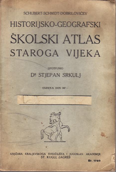 SCHUBERT-SCHMIDT-DOBRILOVIĆEV HISTORIJSKO-GEOGRAFSKI ŠKOLSKI ATLAS STAROGA VIJEKA - UPOTPUNIO STJEPAN SRKULJ