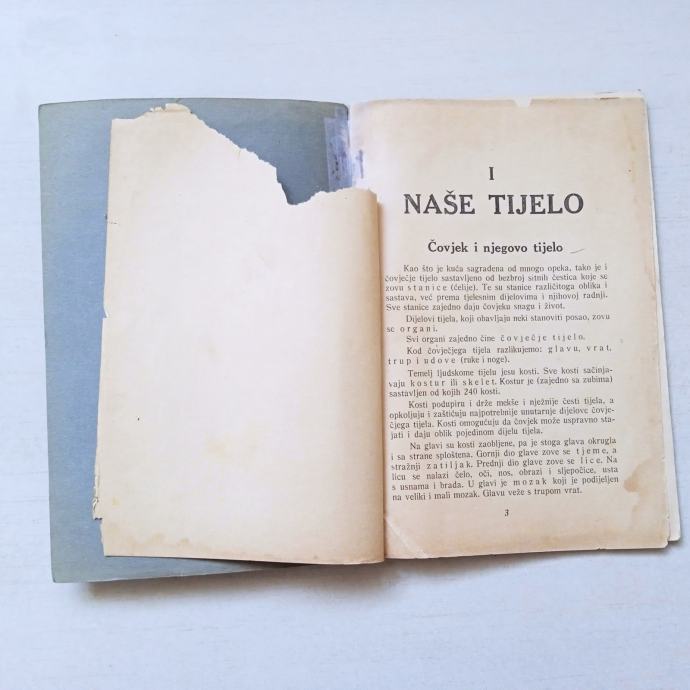 stanje: prva stranica u knjizi oštećena (fali dio), knjiga iznutra lijepljena, izvana očuvana