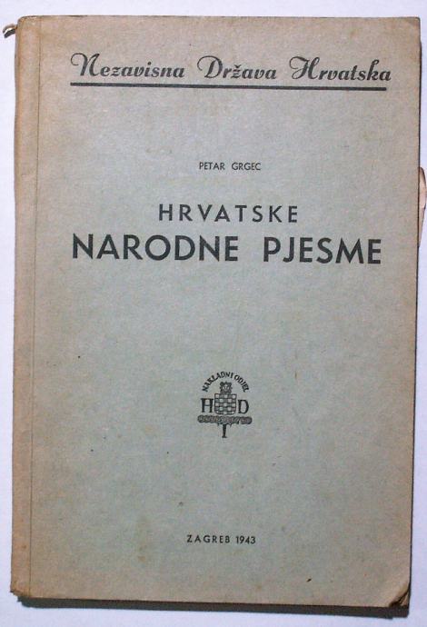 HRVATSKE NARODNE PJESME Petar Grgec NDH Zagreb 1943