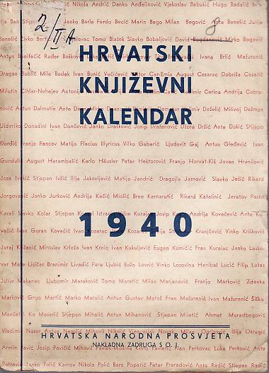 HRVATSKI KNJIŽEVNI KALENDAR 1940 ZAGREB 1940. IZDANJE HRVATSKE KNJIGE