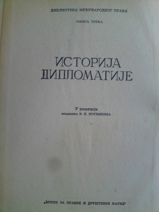Povijest diplomatije novog doba (1872. - 1919.) u izdanju Arhive za pravne i društvene nauke u Beogradu; sastavili: prof. V.M. Hvostov i prof. I.I.Minc; broj stranica: 362; u odličnom stanju.
