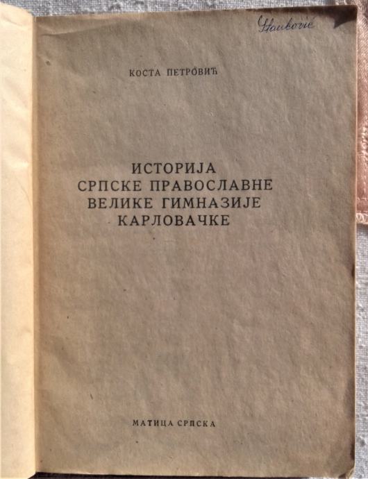ISTORIJA KARLOVAČKE GIMNAZIJE STA PETROVIĆ, MATICA SRPSKA,1951ĆIRILICA