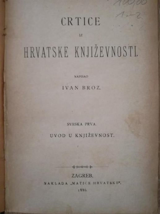 Ivan Broz : Crtice iz hrvatske književnosti 1.-2.