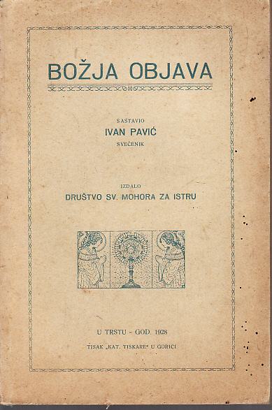 IVAN PAVIĆ : BOŽJA OBJAVA , TRST 1928. DRUŠTVO SV. MOHORJA ZA ISTRU