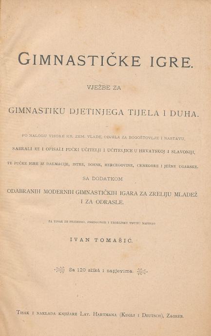 Ivan Tomašić Gimnastičke igre Vježbe za gimnastiku Zagreb 1896