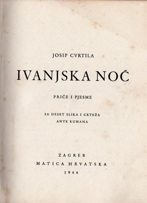 Matica hrvatska, Zagreb, 1944., 116 str., tvrdo ukoričeno, dobro očuvano, deset slika i crteža Ante Kumana