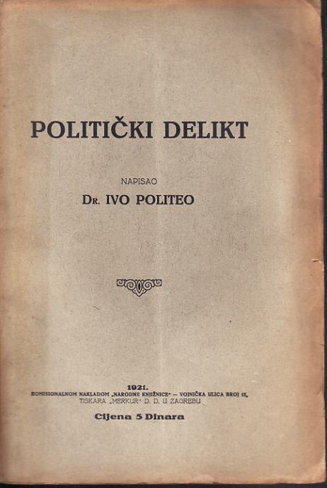 IVO POLITEO : POLITIČKI DELIKT , ZAGREB 1921.