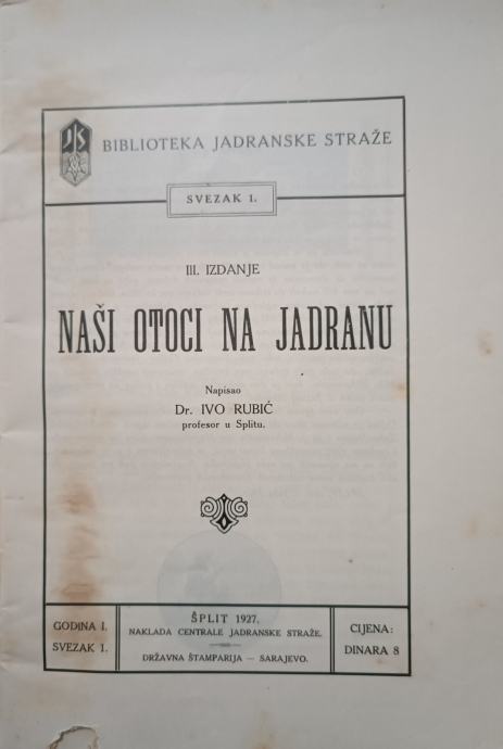 Naklada Centrale Jadranske straže (biblioteka Jadranske straže ; sv. 1), Split,1927.