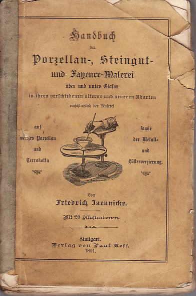 JAENNICKE FRIEDRICH - Handbuch der Porzellan-, Steingut und Fayence-Malerei über und unter Glasur in ihren verschiedenen älteren und neueren Abarten einschließlich der Malerei auf weiches Porzellan und Terrakotta sowie der Metall- und Lüsterverzierung.