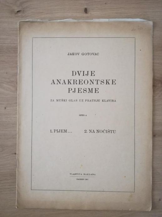 Jakov Gotovac : Dvije anakreontske pjesme : za muški glas ; op. 4.