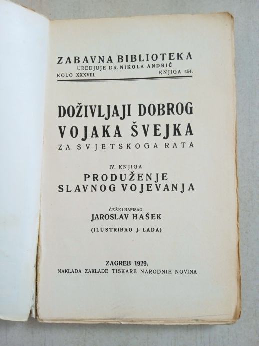 Jaroslav Hašek: Doživljaji dobrog vojaka Švejka (1929.) RIJETKO