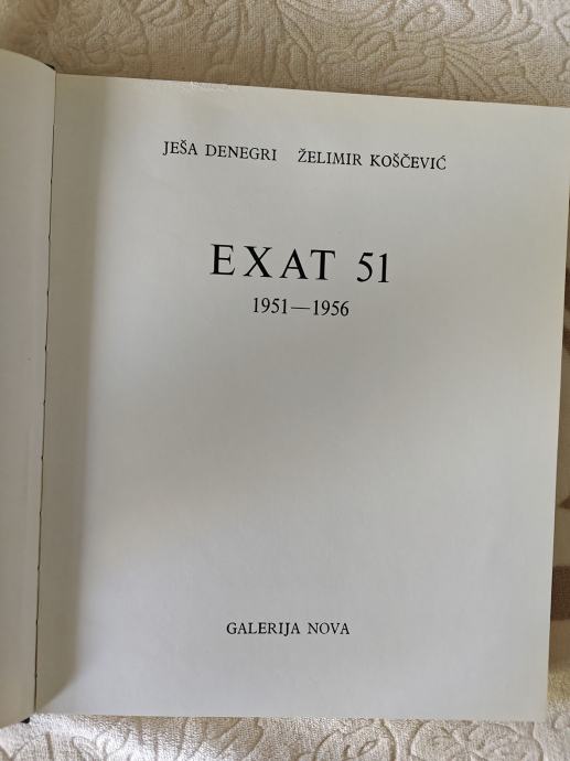 Ješa Denegri, Želimir Koščević: Exat 51 : 1951-1956.; Izdavač: CKD SSO Zagreb, Galerija Nova.; Biblioteka nova monografija 3; Godina: 1979.; Broj stranica: 373.; Dimenzije: 28,5 x 24 cm.