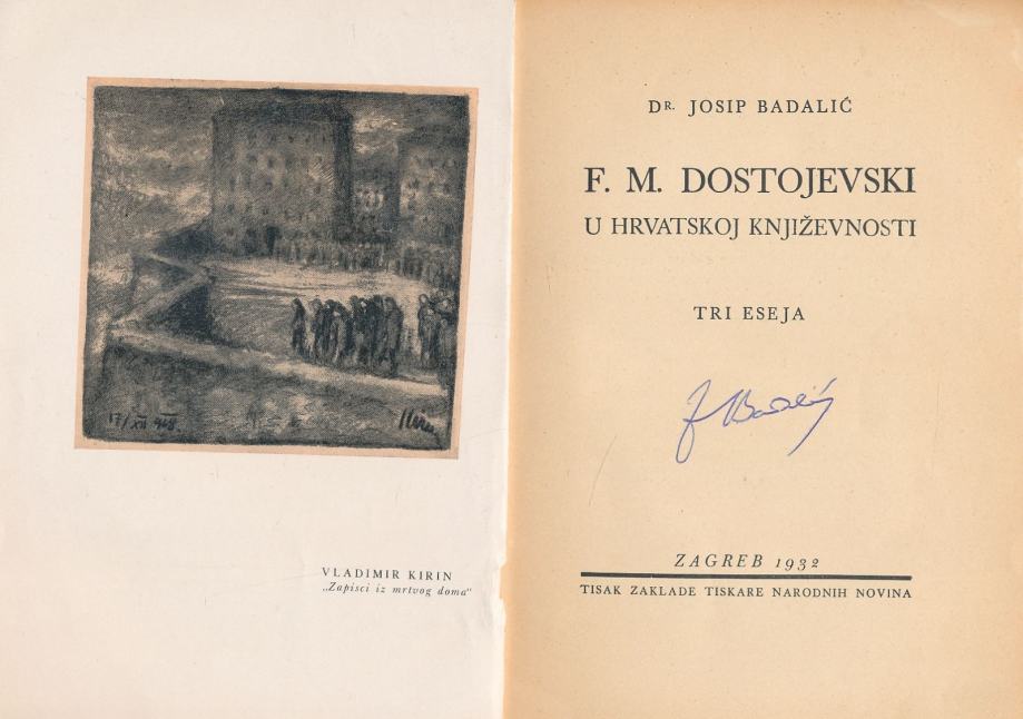 Josip Badalić Dostojevski u hrvatskoj književnosti potpis autora