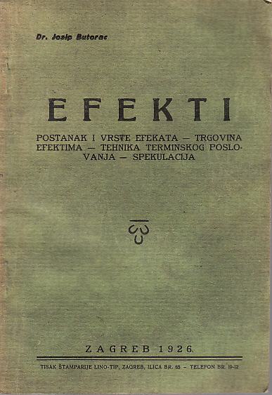 JOSIP BUTORAC : EFEKTI Postanak i vrste efekata - Trgovina efektima - Tehnika terminskog poslovanja - Spekulacija
