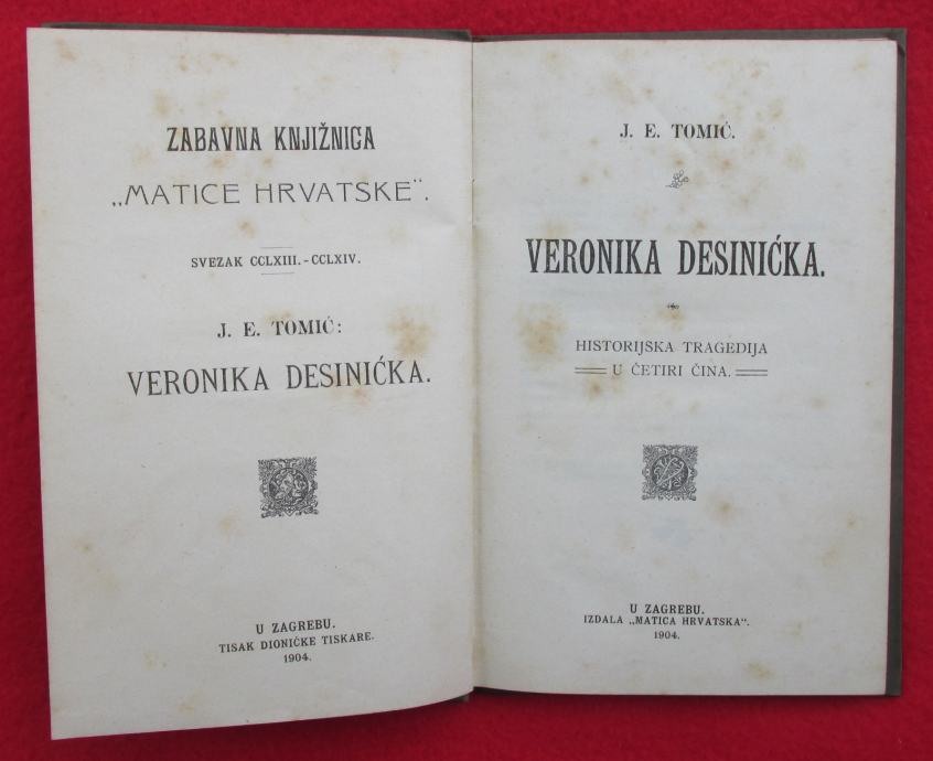 JOSIP EUGEN TOMIĆ - VERONIKA DESINIĆKA, Zagreb, 1904.