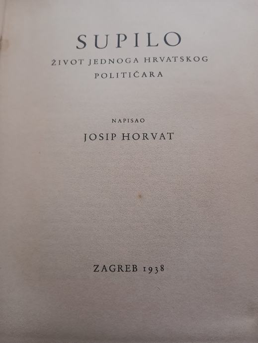 Prodajem knjigu Josipa Horvata, Supilo-roman Hrvatskoga političara, Zagreb 1938. Plačanje na račun ili gotovina.