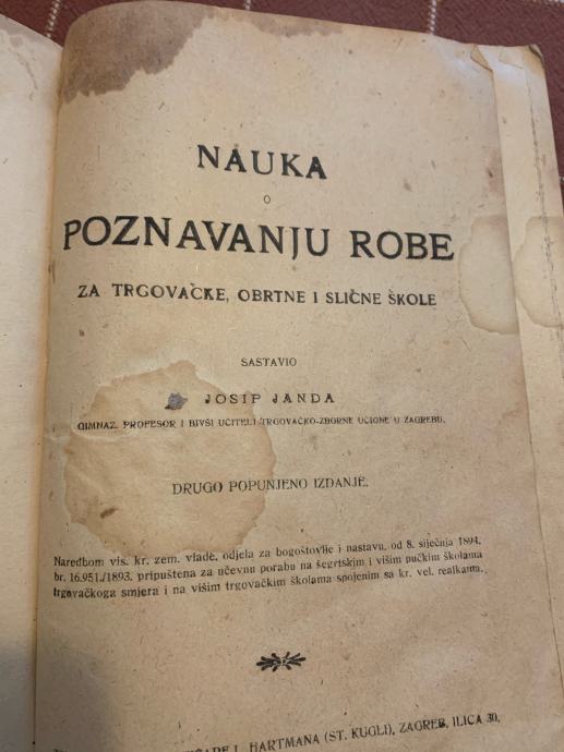 Prodajem knjigu nauka o poznavanju robe za trgovačke,obrtne i sl. škole.. naklade knjižare L.Hartmana Zagreb 1907... ( plaćanje na račun ili gotovina)