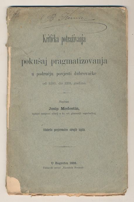 Josip Modestin Kritička potraživanja pokušaj pragmatizovanja DUBROVNIK