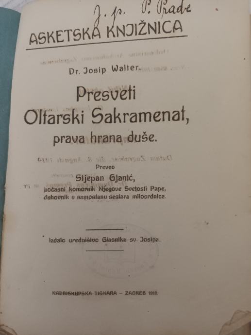 Josip Walter Presveti oltarski sakrament Zagreb 1919