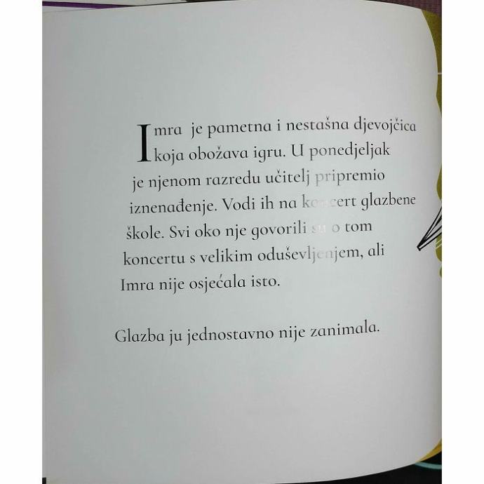 Edukativna slikovnica kojom želimo istaknuti našu svestranost i kreativnost, prikazuje sve što Glazbena škola čini kako bi se ušuljala u živote mlađe publike. Namijenjena je djeci od 6 do 10 godina s ciljem približavanja glazbe mladima te poticanja tolerancije, različitosti i, iznad svega, ljubavi prema glazbi. Teži k tome da budući korisnici budu motivirani i pristupe formalnom glazbenom obrazovanju. Vizija je omogućiti svakome da osjeti moć zajedništva, nauči o prirodi različitih instrumenata te aktivno razvija glazbene interese kroz glazbenu školu. Promocija slikovnice bit će 22. svibnja u 18 sati na Montelibriću, a projekt je realizirala i inicirala profesorica hrvatskog jezika i povijesti Tamara Lorencin zajedno s našim učenicima. Ilustrator je Vibor Juhas, koji je osmislio zajedno s ravnateljicom Romanom Vuksan Zuban i strip Bonton Glazbene škole, toliko važan za kulturu ponašanja na javnim koncertima. Bonton je poslužio kao ideja i predložak za početak ove slikovnice. Kako je Imra pomirila instrumente važna nam je jer smo Imru nazvali po inicijalima naše škole koja ove godine obilježava 75. obljetnicu postojanja i rada. Cijena je 10 eura, a naručiti je možete u Tajništvu škole! Podržite našu školu i vrijedan rad jer ovo je za nas prvi iskorak u pisanju. Vrlo smo ponosni na ljepotu stvaranja i ono što radimo!