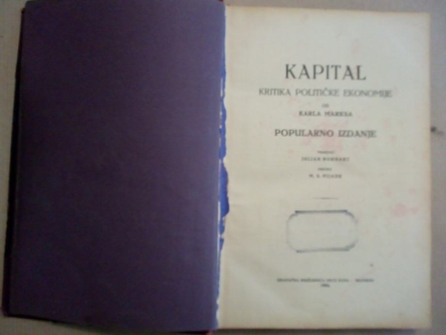 KAPITAL KRITIKA POLITIČKE EKONOMIJE OD KARLA MARKSA , ZAGREB 1924.
