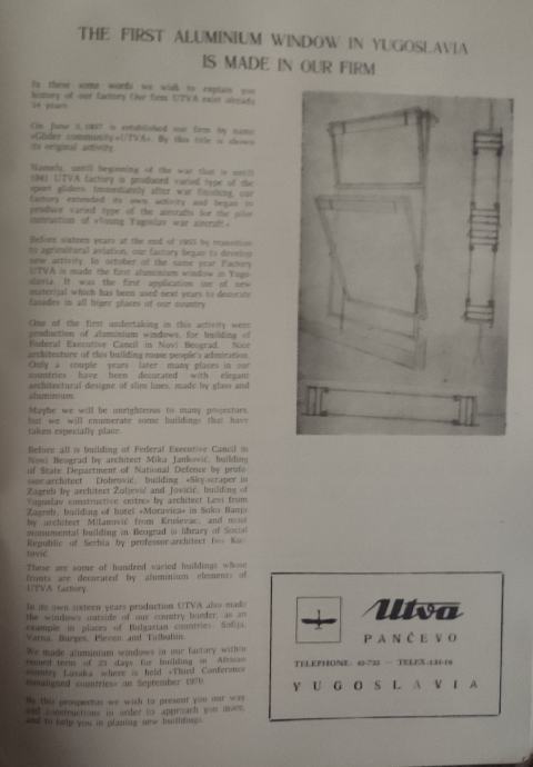 Katalog tvornice Utva iz Pančeva za aluminijske prozore i vrata, 1980