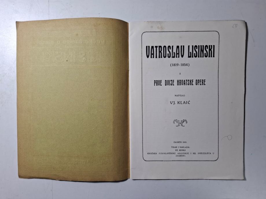 Klaić, Vjekoslav - Vatroslav Lisinski (1819-1854) i prve dvije hrvatske opere