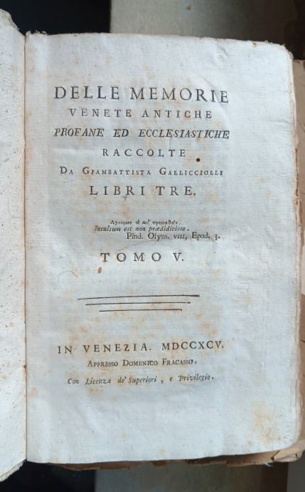 Jezik je talijanski, a tematika je vjerska. Korice vjerojatno nisu originalne, ali ne izgledaju kao da su napravljene u skorije vrijeme