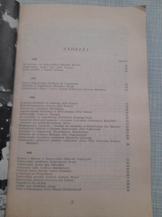knjiga dubrovačke ljetne igre 1953-1963 u stranoj štampi,dubrovnik