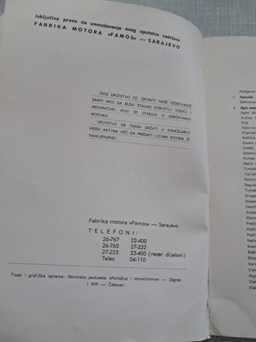knjiga ,,famos,, 1965-uputstvo za rukovanje i održav. motora,oldtajmer