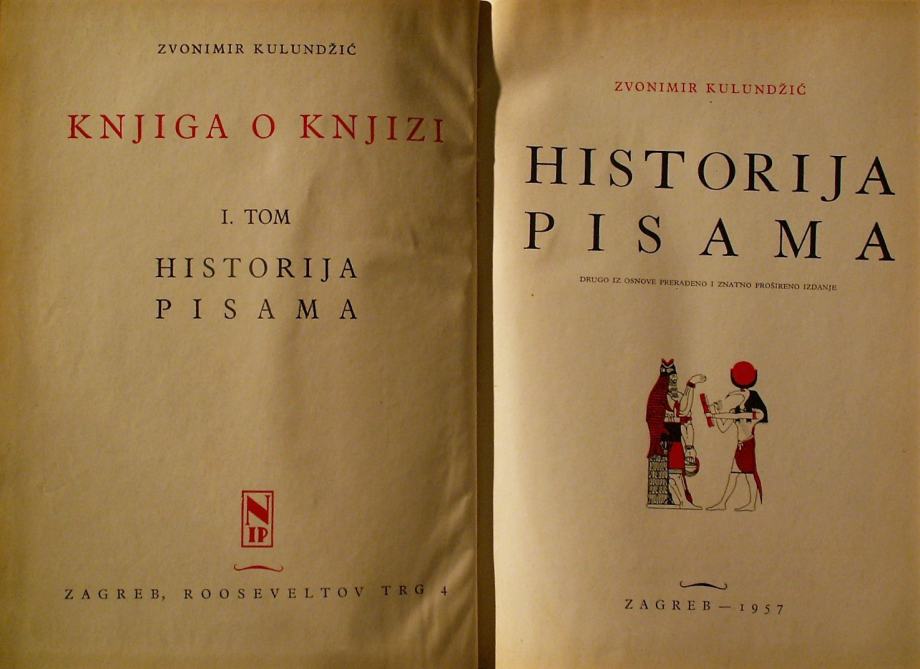 KNJIGA O KNJIZI I. tom Historija pisama Zvonimir Kulundžić tel 0981824