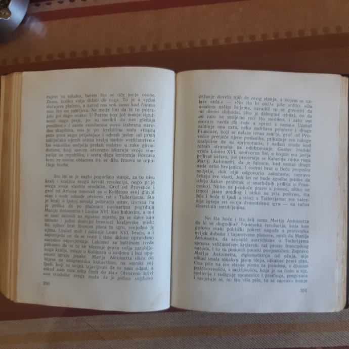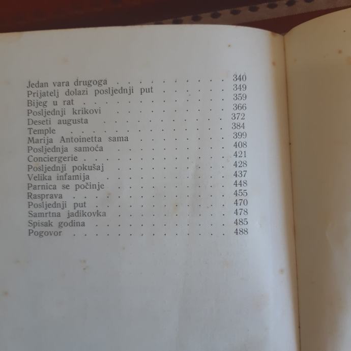 Prodajem knjigu "Marija Antonietta", autor Stefan Zweig. Knjiga je stara 88 godina, ali u jako dobrom stanju. Tvrdi uvez, ima 488 stranica, format 19,5 x 14 cm. Sve stranice na broju, nisu oštećene, po knjizi nije šarano. Samo vanjske korice mogle bi se malo zalijepiti (sama nisam ništa dirala). U knjizi se na prvoj stranici nalazi potpis (vjerojatno prvog vlasnika). Knjiga je portret francuske kraljice Marije Antoinette.