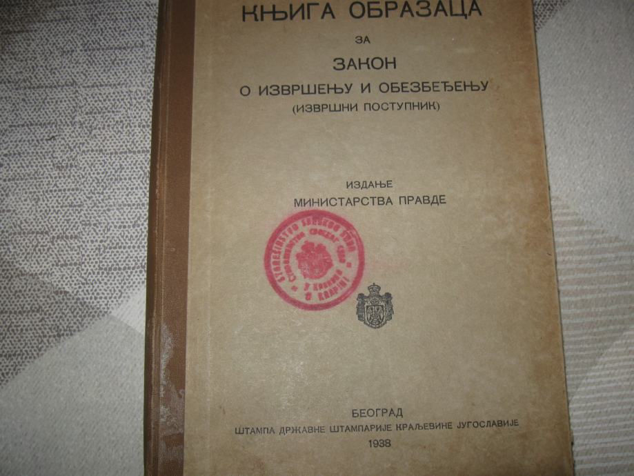 Prodajem knjigu obrazaca za zakon o izvršenju i obezbeđenju koju je izdalo Ministarstvo pravde Kraljevine Jugoslavije 1938. godine.
