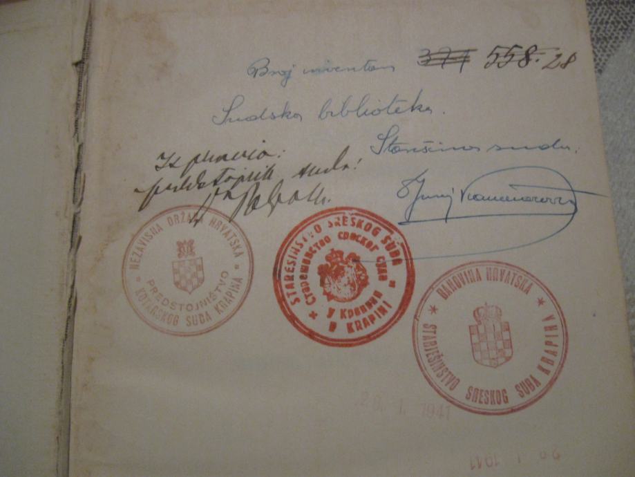Knjiga se koristila za vrijeme Banovine Hrvatske i u vrijeme Nezavisne države Hrvatske.