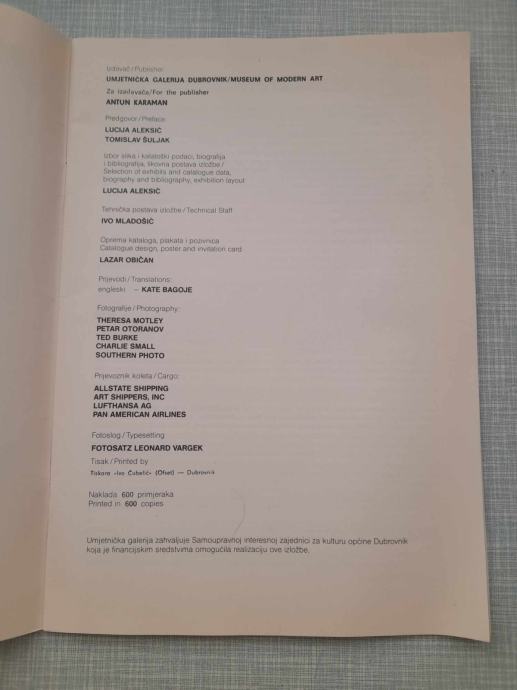 galerija dubrovnik, naklada 600 primjeraka, tiskara ,,ivo čubelić,, dubrovnik, vidi slike