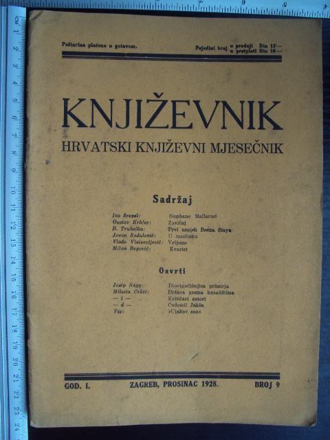 KNJIŽEVNIK br 9 1928 - Hrvatski književni mjesečnik